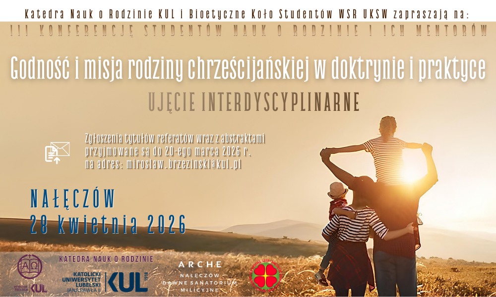 Już 28 kwietnia w Nałęczowie konferencja pt. Godność i misja rodziny chrześcijańskiej – ujęcie interdyscyplinarne. plakat – konferencja studencka 2026 (1)Pobierz